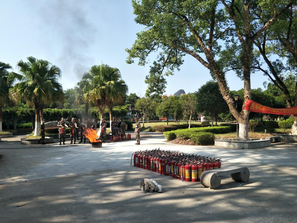 此次演练分别在南、北校区共六个场地同时进行。承训单位教官重点围绕火灾的基本类型、扑灭方式,向同学们详细讲解了消火栓和干粉灭火器的正确操作使用以及火灾的预防与扑救、疏散与逃生等消防知识,并现场进行消防器材的操作演示。