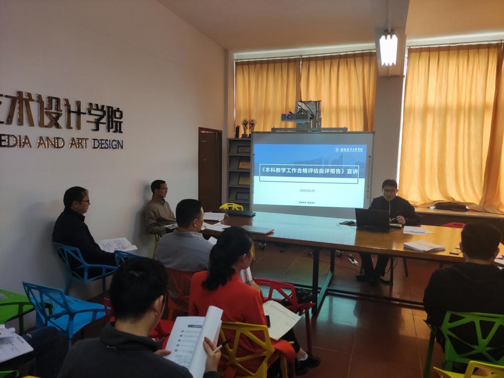 为提高教职工对本科合格评估工作的认识,进一步凝聚共识,按照学校党委要求和学院工作部署,10月9日下午,传媒与艺术设计学院开展了本科教学合格评估自评报告宣讲会。该院全体教师参加了学习,宣讲会由学院相关负责人主持。
