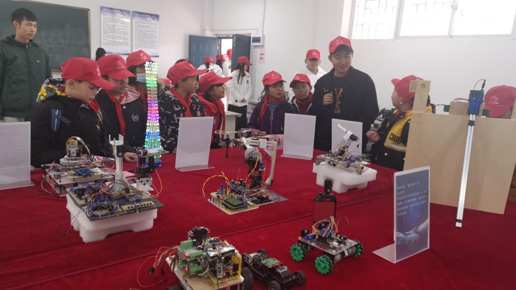 “红电先锋”负责人在与解放村小学校长交流时了解到,身处偏远山区,孩子们没有机会能够参加更多拓展知识的活动,日常上课也缺乏能够激发他们科学思维的课程,本次活动的开展为孩子们提供了一个难得的学习交流机会,为他们树立远大理想和建立学习目标起到了较好的启发作用。活动结束时,实践团还给解放村小学赠送了带有学校标志的“纪念章”、保温杯等物品。据悉,电子信息与自动化学院“红电先锋”团队已连续3年和解放村小学结对共建开展科技扶贫、少儿科普活动,今后将进一步定期派出党员科技骨干前往解放村小学开展丰富的科技“第二课堂”活动,让“大手”拉“小手”,共同为“红领巾”们谱写科技梦想!