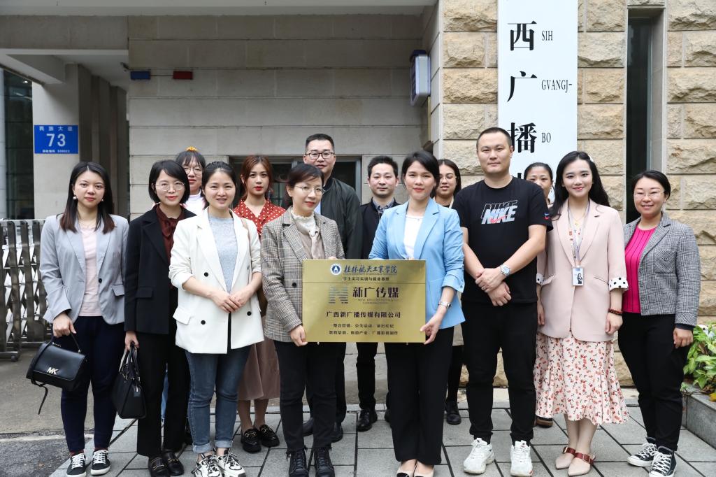调研组还走访了广西新广播传媒有限公司、南宁广播电视台、思维工坊普语培训学校,校企双方一致认为应加强产教融合,做到交汇发展,形成物尽其用、人尽其才的校企合作新局面。在此期间,调研组与广西新广播传媒有限公司举行了“学生实习实训与就业基地”签约授牌仪式。