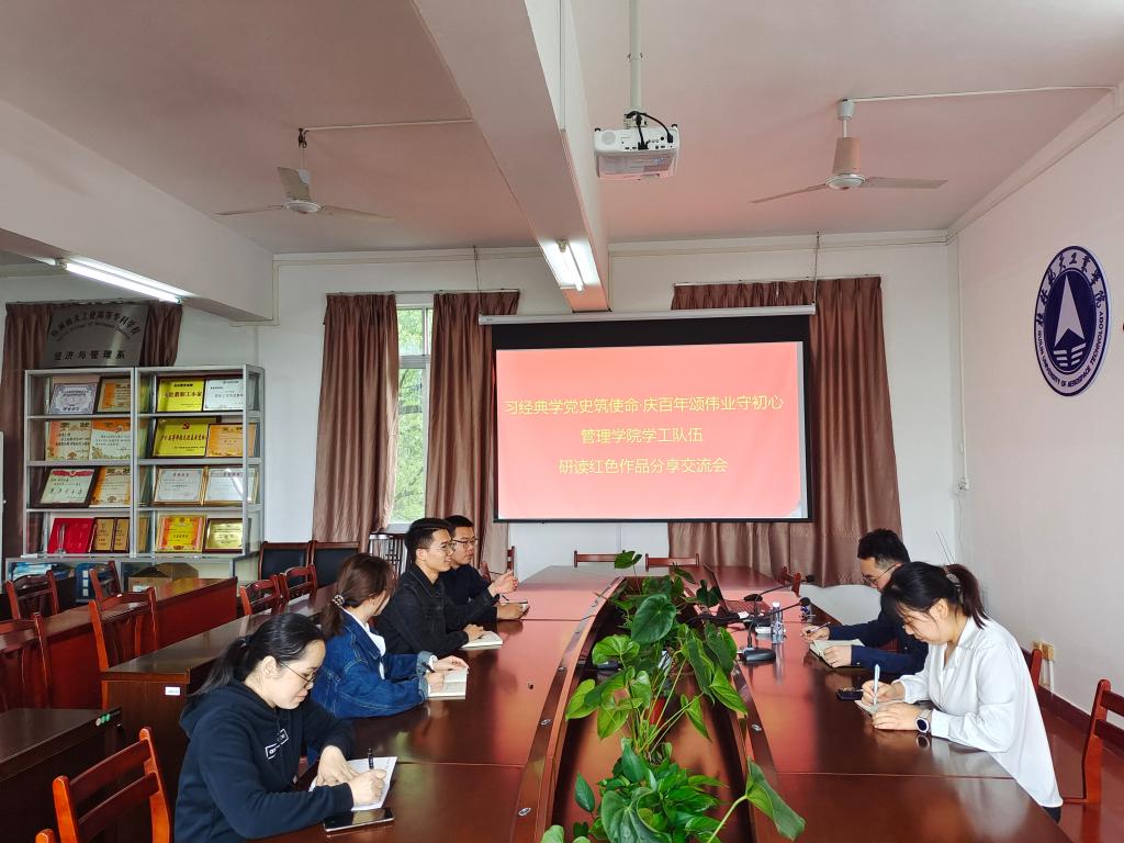 为庆祝党的百年华诞,5月19日,管理学院学工队伍开展研读红色作品分享交流会以及观看优秀红色影片《建党伟业》的相关活动。