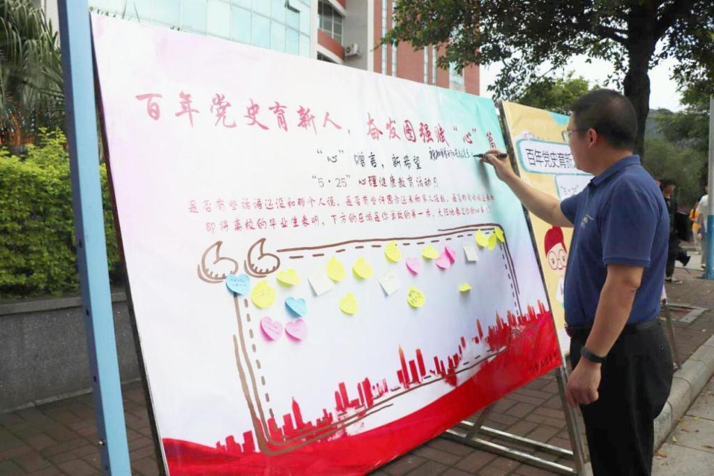 在建党百年之际,为响应学校开展心理健康活动月系列活动的号召,做好大学生心理健康教育工作,切实提高大学生心理素质,机电工程学院于6月16日在巡天楼下举行“百年党史育新人,奋发图强育‘心’篇”系列活动之——“‘心’赠言,新希望”活动。