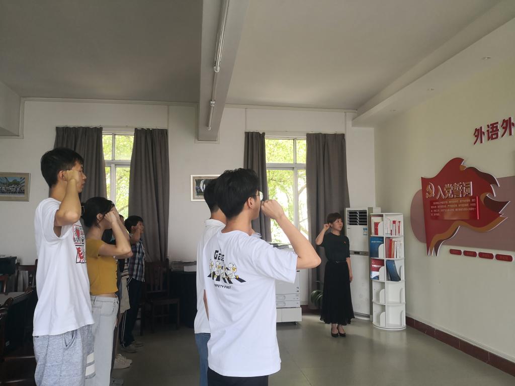 毕业生党员们在学院党总支书记的带领下重温了入党誓词。