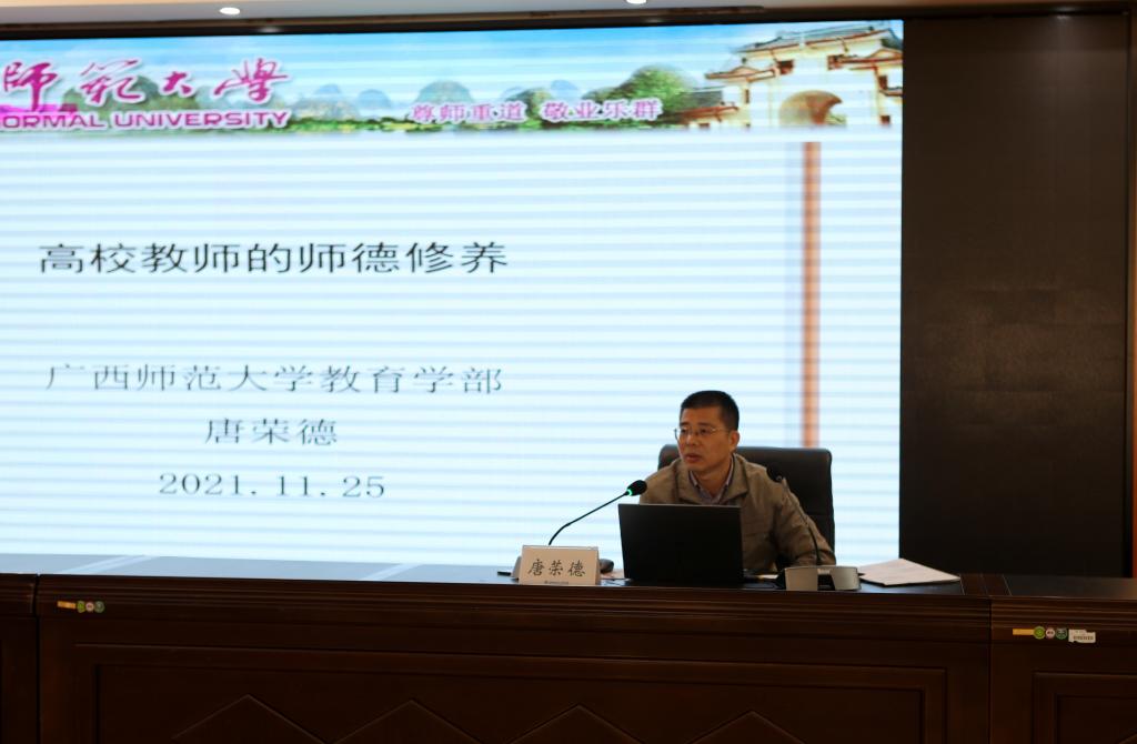 11月25日下午,应教师工作部邀请,广西师范大学教育学部唐荣德教授来校为开云新教师做题为《高校教师的师德修养》的专题讲座。