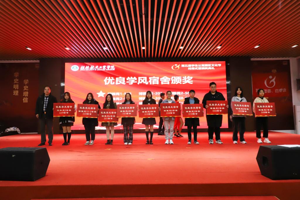 12月7日下午,学校第五届学生公寓文化节在北校区招聘大厅圆满闭幕。校党委副书记刘迎春出席闭幕式,学工部、校团委、各学院党总支副书记、团委书记、辅导员及300余学生参加活动。