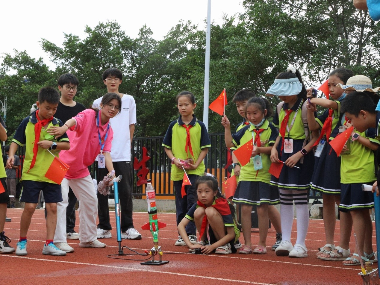 老师和学生们分为A、B、C三组,分别按照不同的路线参观了钱学森广场、运5运输机及歼6战斗机、航天品质中心和北校区的校史馆。在参观过程中,学校相关教师和关心下一代委员会成员作为本次活动的主讲教师,通过讲述“导弹之父”钱学森的故事激发小朋友们的爱国之心、报国之志。通过观看退役运5运输机和歼6战斗机了解不同飞机的构造及用途,进一步讲解我国现阶段的航天事业成就。除了参观开云的航空航天文化场所外,工作人员还带领小朋友们到航空航天科普室体验飞机模拟驾驶和制作橡皮筋飞机、观看飞行器表演、体验了“水火箭”的发射,让小朋友们近距离的体验到了航空航天科技的魅力,激发了青少年崇尚科学、探索未知、敢于创新的精神,点燃了小朋友们对航天的憧憬,坚定了为早日实现科技强国贡献自己青春力量的信念,让航天梦、强国梦在青少年心中茁壮成长。