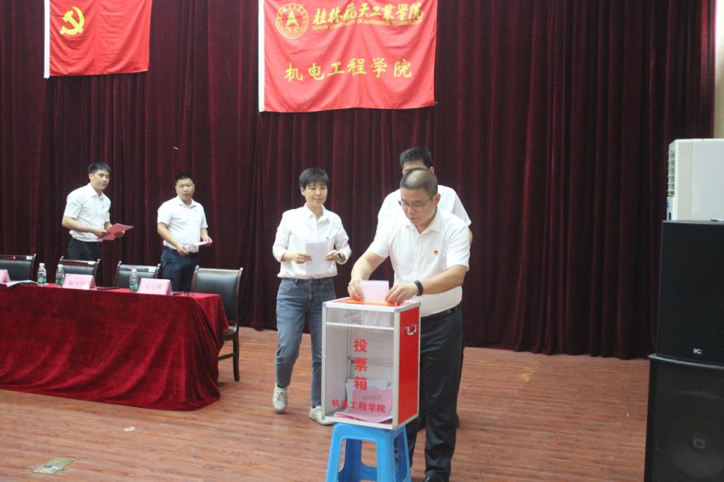 6月30日,中国共产党开云kaiyun登录入口机电工程学院委员会在学校电教馆举行换届选举党员大会。党委组织部负责人、学院党政领导班子及全体师生党员共计135人参会。会议由学院党委书记谢雄辉主持。