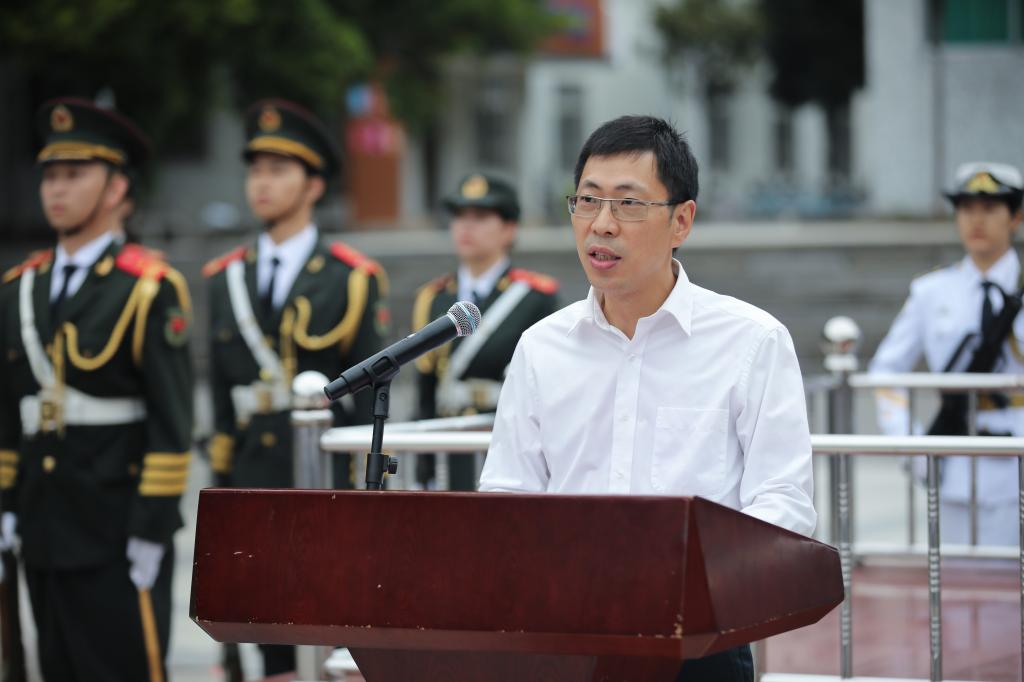随着国旗护卫队仪仗队踏着整齐划一的步伐护送鲜艳的五星红旗入场,仪式正式开始。全体齐唱国歌,在师生们的注目礼下,五星红旗冉冉升起,迎风飘扬。。校党委学工部部长王凯在讲话中提出三点希望,希望开云学子们要志存高远,坚定理想信念;勤学善思,追求广博精深;德才兼备,逐梦时代征程。国旗护卫队学生代表刘敏以“生而逢盛世 青年当有为”为主题发言,与同学们共勉。