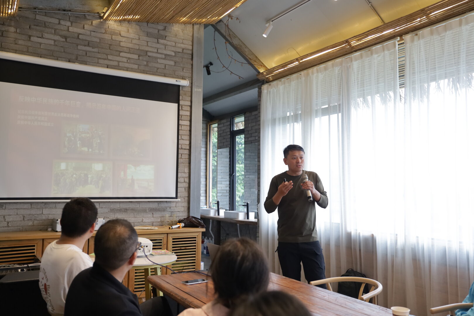 在活动现场,学院党委委员曹佳欣老师为支部党员及党外教师作题为“文艺是时代的号角”的主题党课,曹佳欣老师分别从紧跟时代步伐、揭示人间正道、满足人民文化需求、讲好中国故事等四个方面,进行深入浅出的分析讲解,并就红色文化元素如何融入日常教学、设计实践作分享交流。
