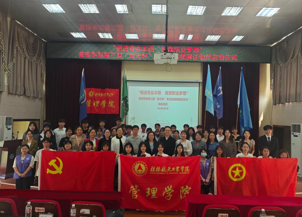 为落实立德树人根本任务,提升学风建设成效,4月1日,管理学院在北校区电教馆举行以“锻造专业本领,探索职业梦想”为主题的第三届“探天杯”专业技能竞赛活动月启动仪式,该院党委副书记潘小玲,团委书记、赛事指导老师、辅导员及参赛学生代表200余人参加仪式。