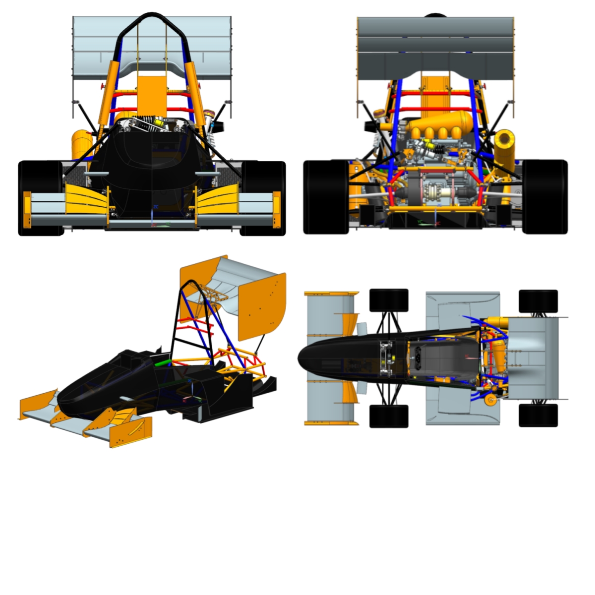 经过近1个多月的反复修改,最终在第三次设计评审会上敲定设计方案,2024赛季赛车设计从轮辐结构、车辆人机工程、尾翼内部结构等方面进行重点优化,同时解决上一赛季存在的排气歧管与消声器连接不紧密、赛车各工况下动能损失较大、制动效率较低等问题。