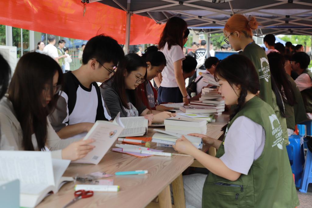 活动现场,一幅幅精美的海报吸引了众多师生的目光。海报上书写着“读书,就是让自己变得辽阔的过程。“书中未必有黄金屋,但一定有更好的自己”,寓意着阅读的力量能够引领我们走向更广阔的天地,而“趣阅心灵·书香开云·书享对话”的活动名称,传递出此次活动不仅是一次阅读的盛宴,更是一次心灵的对话和分享。其中,“书享对话”读书沙龙成为了此次活动的一大亮点,在这里,师生们围坐一起,认真阅读书籍并摘抄受到启发的金句,通过先在读书分享板上盲选书签的方式来进行对话交流。礼尚往来,既带走了感悟,也留下了书香。