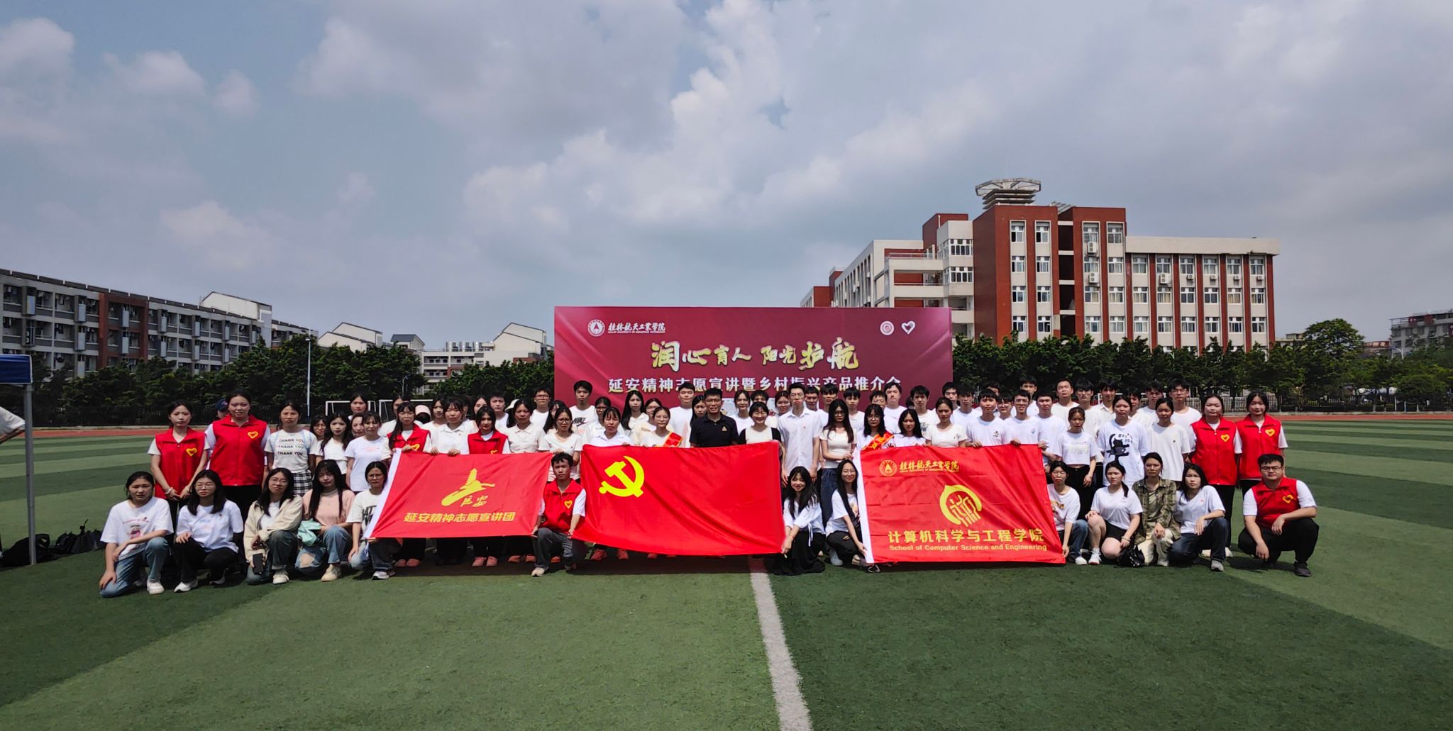 5月25日,全国大学生延安精神宣讲团开云kaiyun登录入口星火燎原志愿服务队联合计算机科学与工程学院学生第一、第二、第五党支部开展“延安精神宣讲暨乡村振兴产品推介会”主题党日活动,活动在学校风雨足球场举行,支部全体党员参加。