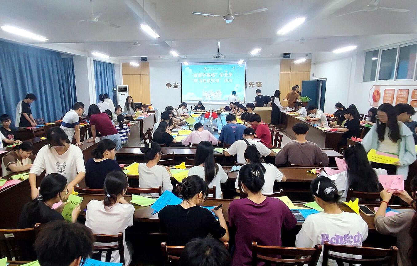 6月18日,学校一站式学生社区在巡天楼229组织开展“青春不散场”毕业季“纸飞机送祝福”活动,共有百余名在校生志愿者参与此次活动。