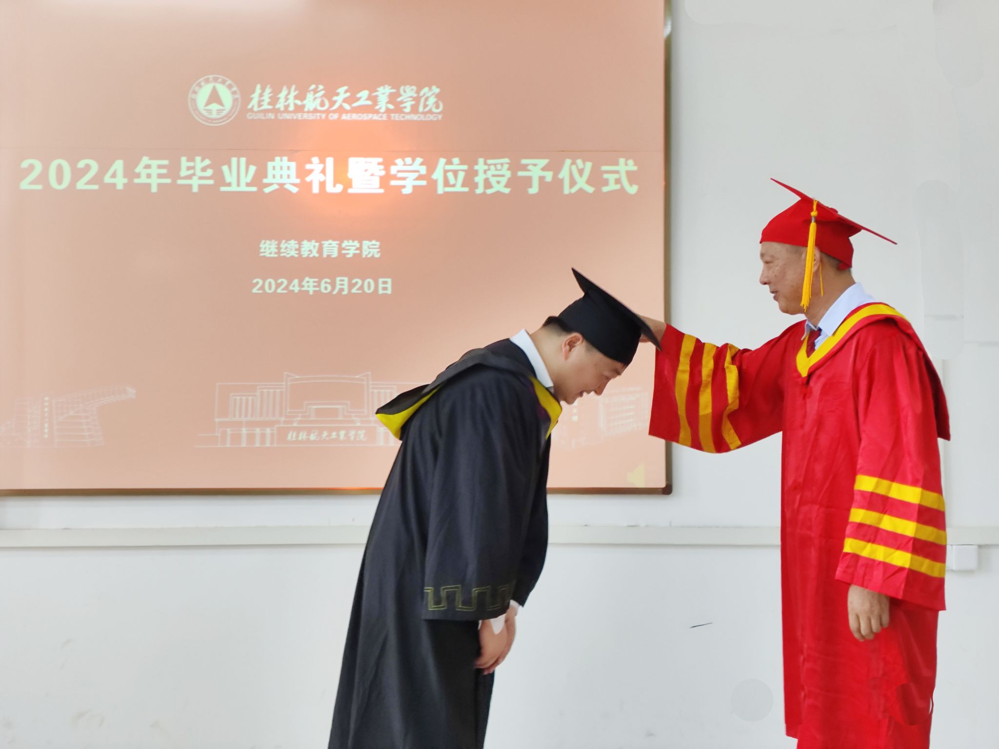 6月20日上午,继续教育学院2024年学生毕业典礼暨学位授予仪式在探天楼A303室隆重举行。学校副校长胡泽民、继续教育学院负责人、校外教学点代表以及2024年毕业生代表参加了典礼。