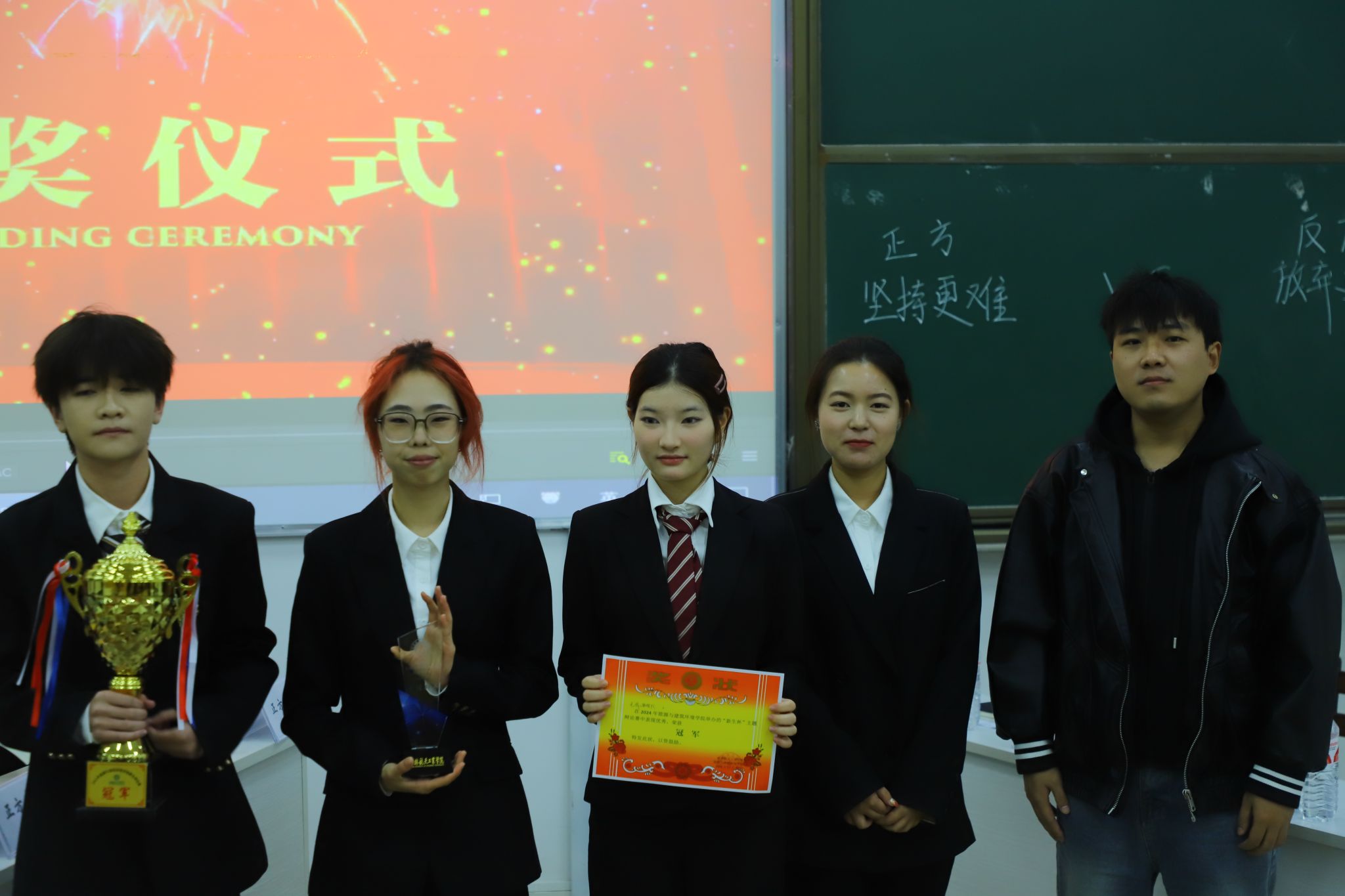 经评委团严谨评审、公正打分,一番激烈角逐后,24工管1队(反方)凭借出色的团队协作、扎实的逻辑论证与卓越的临场应变,斩获本次“新生辩论赛” 决赛冠军殊荣。本次辩论赛不只是言语的较量,更是能力、智力、精神意志的全方位角逐,相信这场辩论赛种下的思辨种子,将在学生未来学术与实践土壤中,绽放出绚丽的创新之花。