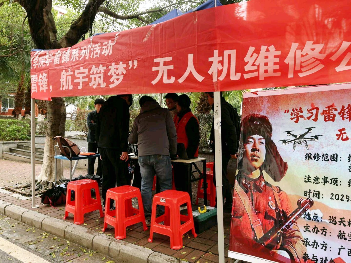 近日,航空宇航学院积极响应校团委“学雷锋月”的号召,组织学院无人机遥测重点实验室和团委学生会的学生骨干组成了一支学生志愿服务团队,开展无人机义务维修志愿服务活动。活动聚焦学校无人机爱好者的需求,以专业技能服务师生,用实际行动诠释新时代雷锋精神。