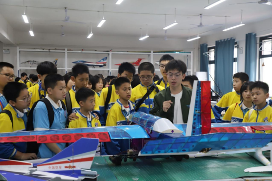 在大学生志愿者的带领下,同学们参观了航天博物馆、汽车实训中心、航空宇航学院,认真聆听志愿者的讲解,积极参与互动体验,不仅学习了航空航天知识,还坐上了航V车队的赛车,并亲自动手操作无人机,在沉浸式的体验中,激发出对科学世界的探索。
