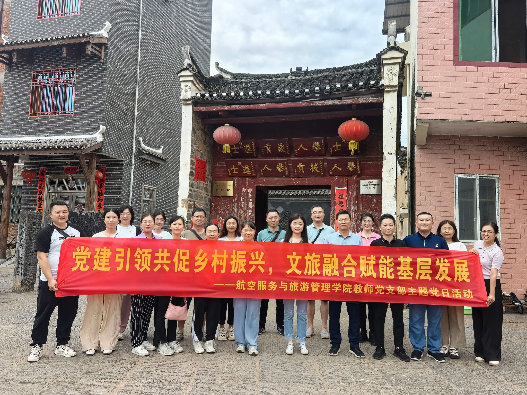 为庆祝中国共产党成立104周年,深化党建引领作用,推动基层党组织互融共建,助力乡村振兴与文旅融合发展。近日,航空服务与旅游管理学院教师党支部赴文市镇集全村开展“1+1”党支部互融共建系列活动。通过座谈交流、专项调研、知识竞赛、专题党课等形式,凝聚党建合力,践行初心使命,推动高校党建资源下沉乡村振兴一线。