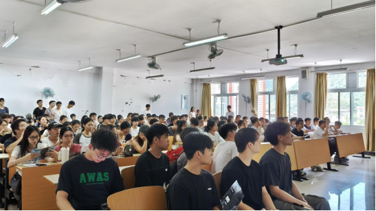 下午三点,招聘会正式开始。邦普公司人力资源部门负责人通过宣讲会,详细介绍了公司的发展历程、核心业务、企业文化以及本次招聘的岗位需求与人才培养计划。宣讲会现场座无虚席,过道也站满了认真聆听的学生。同学们就职业发展路径、薪资待遇、技术方向等关心的问题与企业代表进行了积极互动,展现了极高的参与热情和清晰的职业规划意识。为精准选拔人才,宣讲结束后,企业随即组织了现场笔试环节,同学们沉着应考,结合专业知识与实际问题解决能力,认真作答。
