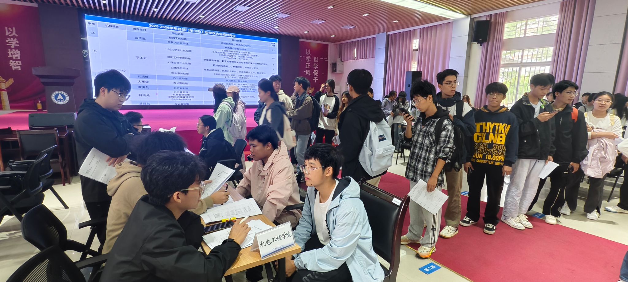 双选会现场,前来应聘的同学满怀期待、络绎不绝,“一站式”社区工作人员以高度的热情与敬业精神引导每位同学,确保双选会现场井然有序。各招聘岗位负责人认真查阅同学们的简历,仔细记录学生的特长特点,耐心地解答学生的疑问,同学们对心仪岗位有了更加清晰的认识,老师们也更加深入地了解了学生的特长与需求。