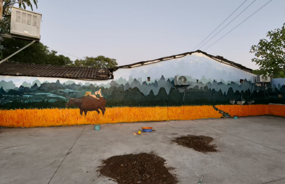 在村口的农舍外墙边,视传专业的师生们正全神贯注地进行墙绘创作。他们巧妙结合丫吉村的自然风光与人文气息,将一幅幅生动的田园画卷跃然墙上,不仅美化了村容村貌,更为冬日的乡村留下了独特而温暖的文化印记,架起了高校师生与村民情感沟通的桥梁。