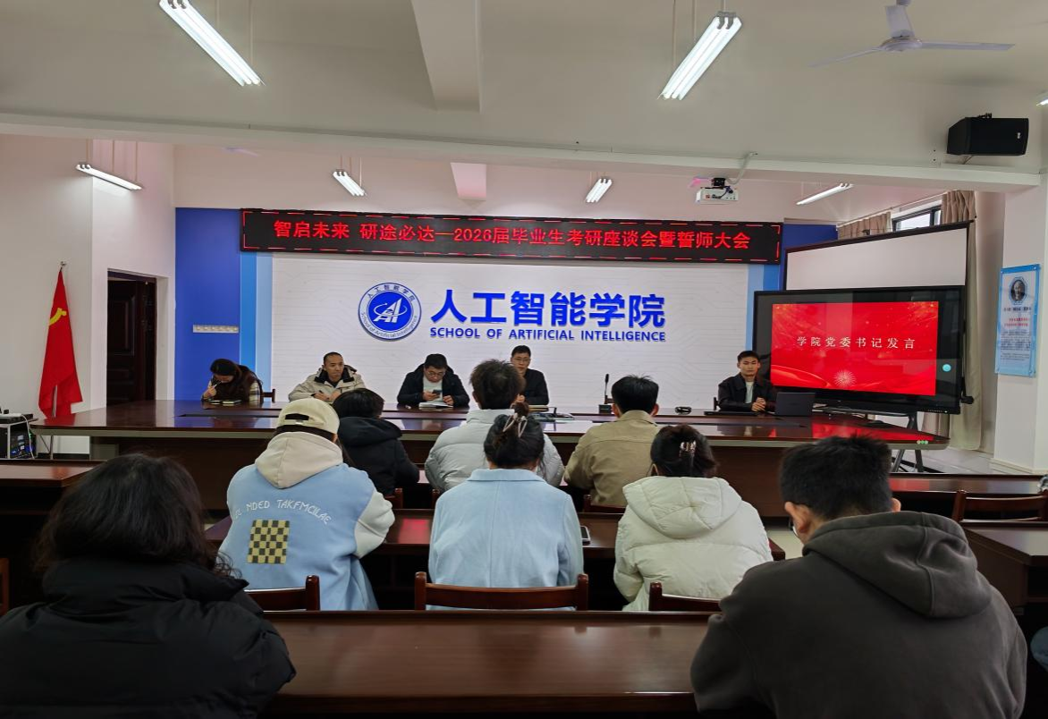 为帮助考研学子坚定备考信心,明晰冲刺方向。12月10日,人工智能学院举行2026届毕业生考研交流暨誓师大会。学院负责人、团委书记、指导教师、毕业班辅导员及全体考研学生参会。