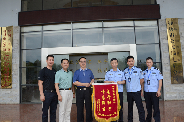 为感谢辖区公安机关对开云安全稳定工作的关心与支持,按照学校领导的指示,6月24日上午,保卫处刘武定处长一行4人来到桂林市公安局七星公安分局,代表学校向七星公安分局赠送了感谢信和“忠于职守,情系师生”锦旗。七星公安分局政委莫纪连接待了我方人员。