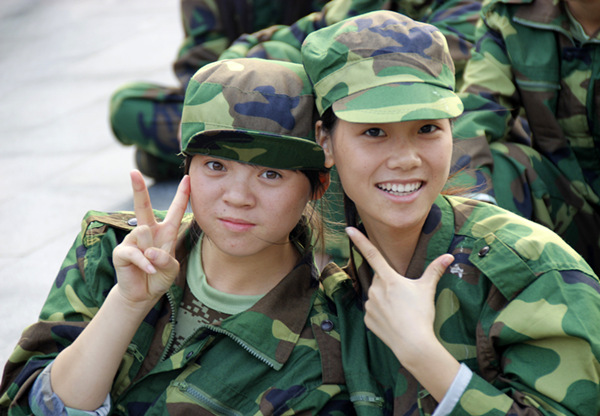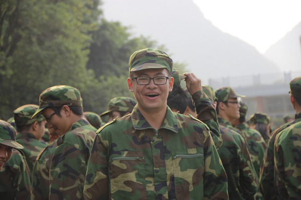 工商管理系营销与策划专业 伍雪薇同学:我们的教官也是90后,和我们年龄相差不大,和我们默契度很高,训练的时候他最大的爱好就是“整”我们,站军姿什么的根本不值得一提。最丧心病狂的就是他总在我们面前逗我们笑还不准我们笑,谁笑了就要多站两分钟。休息时间我们就一个劲的埋怨他,他也不生气,总是笑呵呵的。