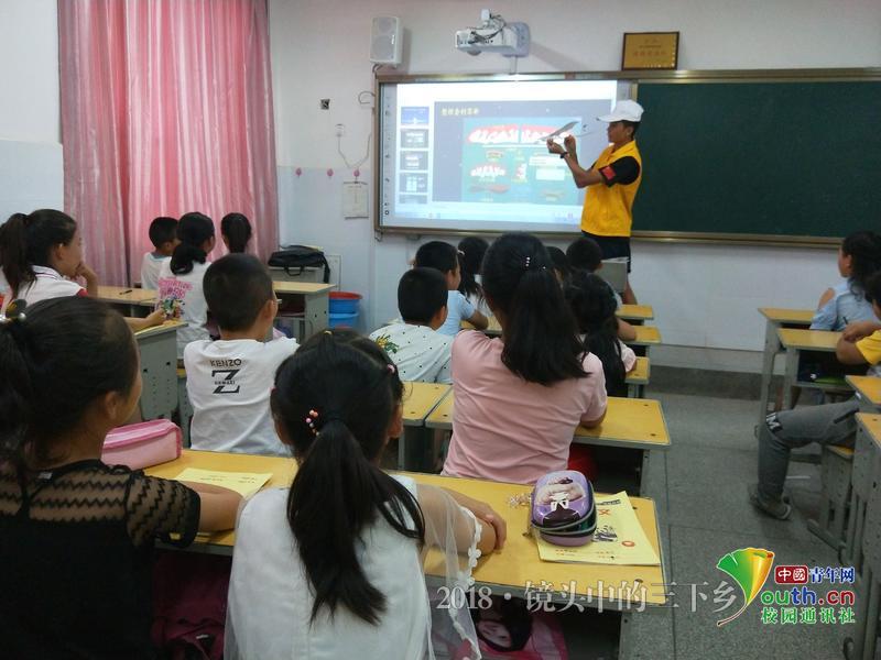 图为支教老师在讲解飞机模型。中国青年网通讯员 梁芳 摄