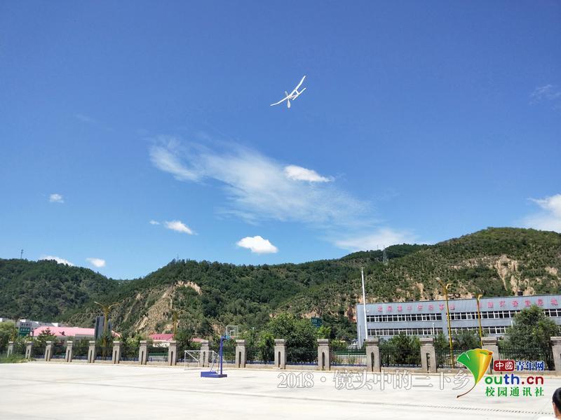 图为所有学生在高地上一起放飞承载着他们梦想的飞机。中国青年网通讯员邓丹馨 摄