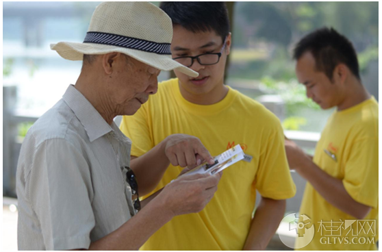 实践队队员在西河沿岸开展问卷调查。桂林广播网通讯员 林师毅 摄