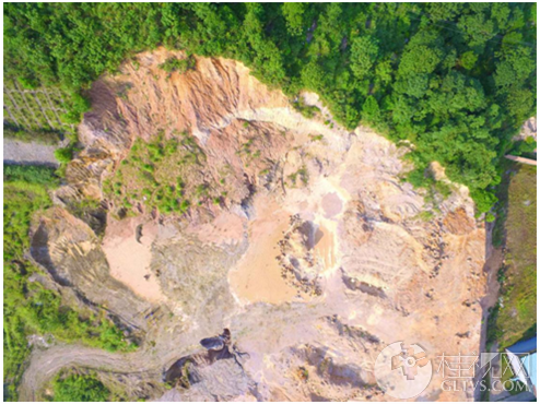 无人机航拍滑坡位点。桂林广播网通讯员 林师毅 摄