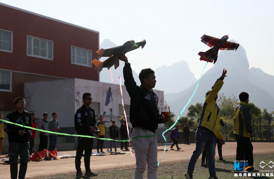 同学们在进行无人机飞行表演。新华网发 杨永昌摄