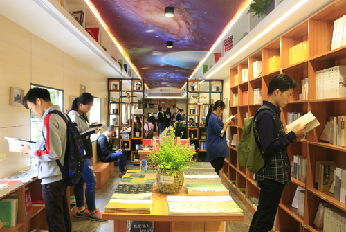 易忠和张艺兵共同为“独秀书房·开云火车号”揭牌,开启开云文化育人的“新地标”。作为广西唯一的航天特色本科院校,该校积极把依托航天办学,依托工业兴学的办学理念融入校园文化建设,与广西师大出版社合作,结合学校航天特色文化,巧妙设计了车厢式阅读空间,打造了广西首家“火车书吧”,推出2000余种图书供师生阅读购买。今后,学校将充分利用行业的优势资源,进一步加强校企合作,共同举办一系列阅读主题活动,把“独秀书房?开云火车号”打造成师生阅读与交流的新平台。
