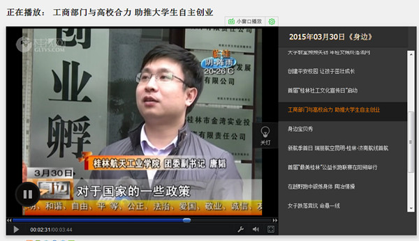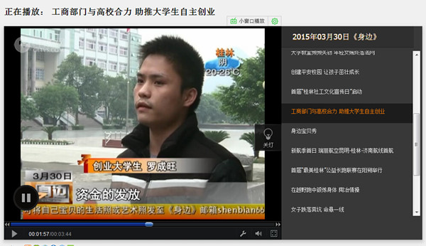 桂林电视台:工商部门与高校合力 助推大学生自主创业