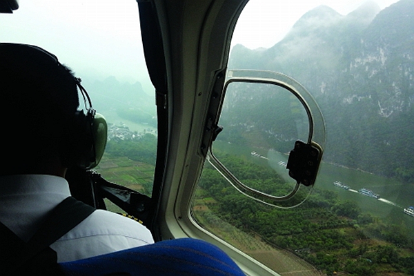 当天,直升机从广西首个通用航空机场—桂林兴安通用机场起飞,沿漓江源头而下,杨堤、兴坪等河段,九马画山、黄布倒影等漓江经典景点尽收眼底,之后顺利到达目的地阳朔。