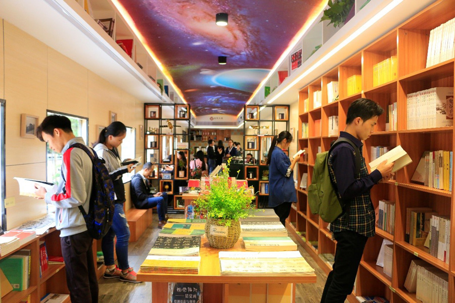 师生们在火车书吧里阅读书籍。兰益婷 摄