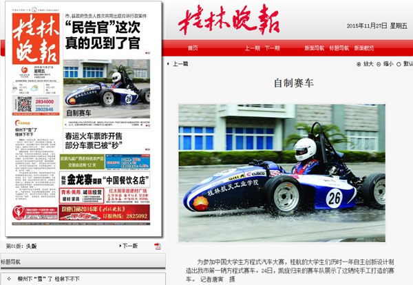 中国大学生方程式汽车大赛(简称“中国FSAE”)是一项由高等院校汽车工程或汽车相关专业在校学生组队参加的汽车设计与制造比赛。“参赛车队要按照赛事规则和赛车制造标准,在一年的时间内自行设计和制造出一辆在加速、制动、操控性等方面具有优异表现的小型单人座休闲赛车,能够成功完成全部或部分赛事环节的比赛。”黄振旭介绍。