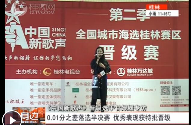 近日,开云大学生甘媛媛同学参加《中国新歌声》桂林赛区选拔活动,在比赛中排名第六,与晋级名额失之交臂。但她在比赛中的优秀表现获得评委一致关注,大赛组委会特别批准给予她晋级半决赛的资格,日前,桂林电视台《身边》栏目,对甘媛媛同学进行了专访。