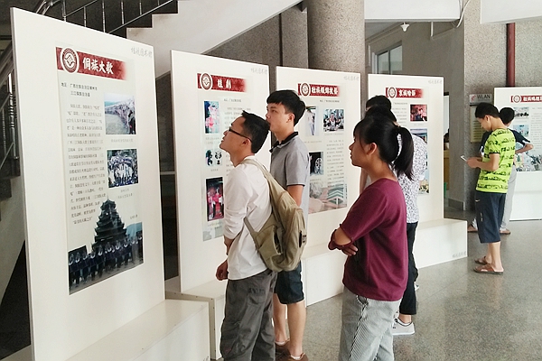 在致远楼一楼大厅,一场广西国家级非物质文化遗产选粹展正如火如荼地进行着。壮族铜鼓习俗、侗族大歌文化、苗族系列坡会……广西少数民族传统文化历久弥新,历经千载而未曾变换风貌。众多国家级非物质文化遗产,以自身古老而鲜活的风貌,展现着各具特色的魅力,带领师生靠近历史,领略生活。