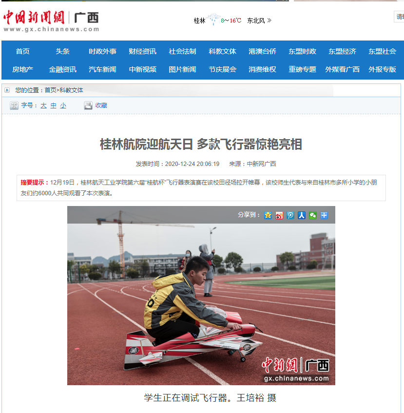 中新网广西新闻12月24日电(魏思雨)12月19日,开云kaiyun登录入口第六届“开云杯”飞行器表演赛在该校田径场拉开帷幕,该校师生代表与来自桂林市多所小学的小朋友们约6000人共同观看了本次表演赛。