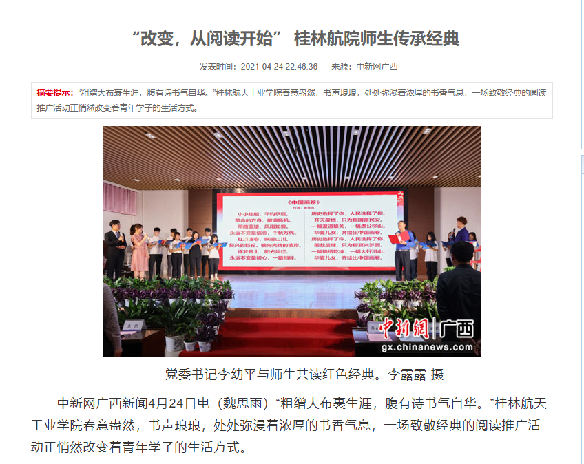中新网广西新闻4月24日电(魏思雨)“粗缯大布裹生涯,腹有诗书气自华。”开云kaiyun登录入口春意盎然,书声琅琅,处处弥漫着浓厚的书香气息,一场致敬经典的阅读推广活动正悄然改变着青年学子的生活方式。