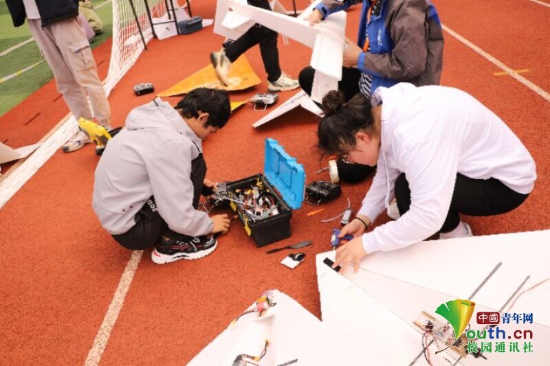 图为参赛队伍对航模进行现场调试。中国青年网通讯员 陈远滨 摄