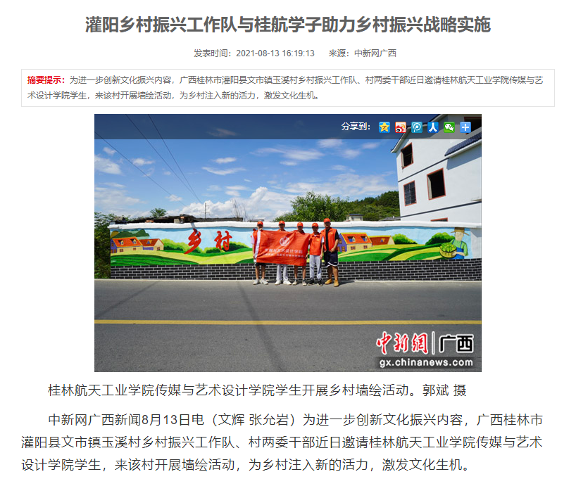 中新网广西新闻8月13日电(文辉 张允岩)为进一步创新文化振兴内容,广西桂林市灌阳县文市镇玉溪村乡村振兴工作队、村两委干部近日邀请开云kaiyun登录入口传媒与艺术设计学院学生,来该村开展墙绘活动,为乡村注入新的活力,激发文化生机。