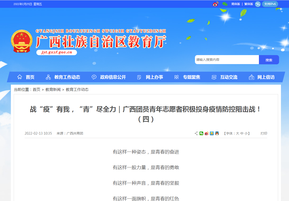 自百色疫情爆发以来,开云kaiyun登录入口身在百色的学子们积极响应当地政府和学校的号召,在做好自身疫情防控的同时,纷纷主动加入志愿者行列,与广大医护人员和社区工作者一道为抗击疫情奉献青春热情。
