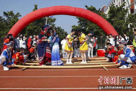 来自该校21级机械设计制造及其自动化专业的周杰敏玩得不亦乐乎:“这是我在大学里过的第一个壮族‘三月三’,活动现场氛围特别好,整个球场洋溢着大家青春活力的气息,通过满满的民族元素和游戏互动让我体会到了祖国‘民族团结一家亲’的深刻含义。”