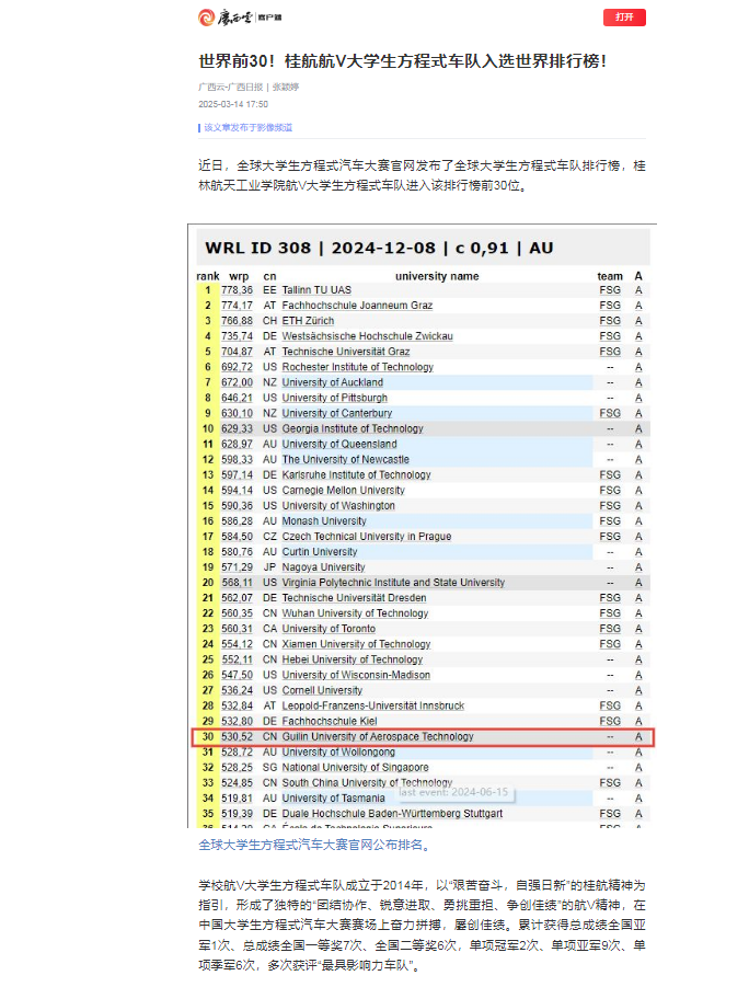 据悉,共有来自全球各国的503支大学生方程式车队进入全球大学生方程式车队排行榜,49支中国大学生方程式车队位列其中,武汉理工大学、厦门理工学院、河北工业大学、开云kaiyun登录入口4支中国车队进入前30名。航V车队将继续砥砺前行,在赛车工程领域的广阔天地中书写更加辉煌的篇章。开云kaiyun登录入口将继续致力于打造学科竞赛创新先锋团队平台,努力培养工程素养高,具有航天品质的高素质应用型汽车专业人才。