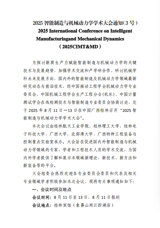 2025智能制造与机械动力学学术大会通知(3号)