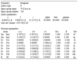 制备得Sm2Fe14B单相合金,对Sm-Fe-B三元系在973 K的相关系进行了实验测定,如图4所示,并确定该等温截面包含15个单相区,30个两相区和16个三相区,如图4所示,研究成果已发表在Journal of Alloys and Compounds, 667(2016): 240-247。